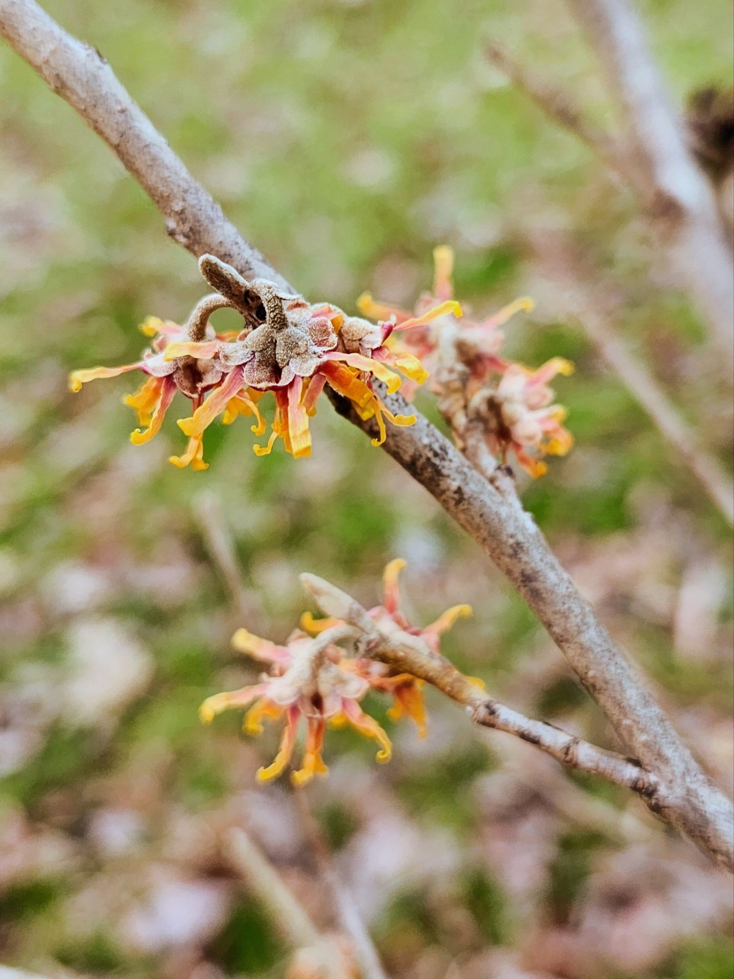 The Ozark witch hazel is the least showy of the garden’s witch hazels with small, rusty yellow petals. The Asian hybrids that follow in a few weeks are the brightest in color and the most floriferous, and they’ll continue until the late winter flowering of bulbs and other shrubs announce the arrival of spring.