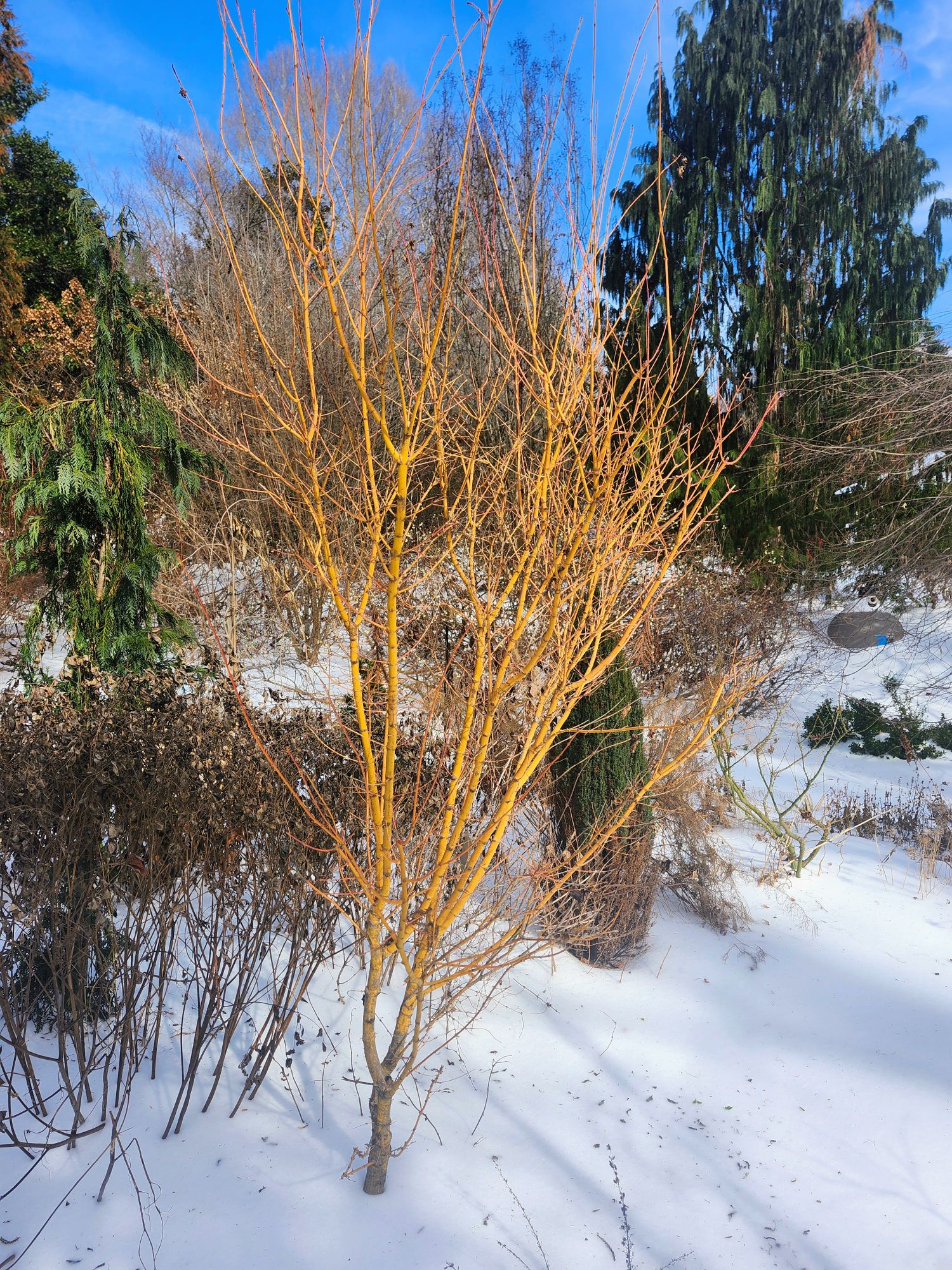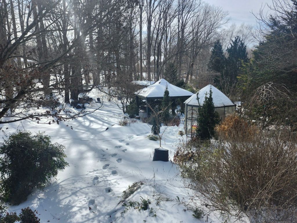 With only a few days forecast to rise slightly above freezing, I expect that snow will be slow to melt. This will delay snowdrops that were making their first show. Many hellebores displayed swelling buds before being covered by snow, and several were flowering. With this insulation, buds could continue to enlarge, with the hope that hellebores, snowdrops, and winter aconites (Eranthis) make a grand show soon after the snow departs.