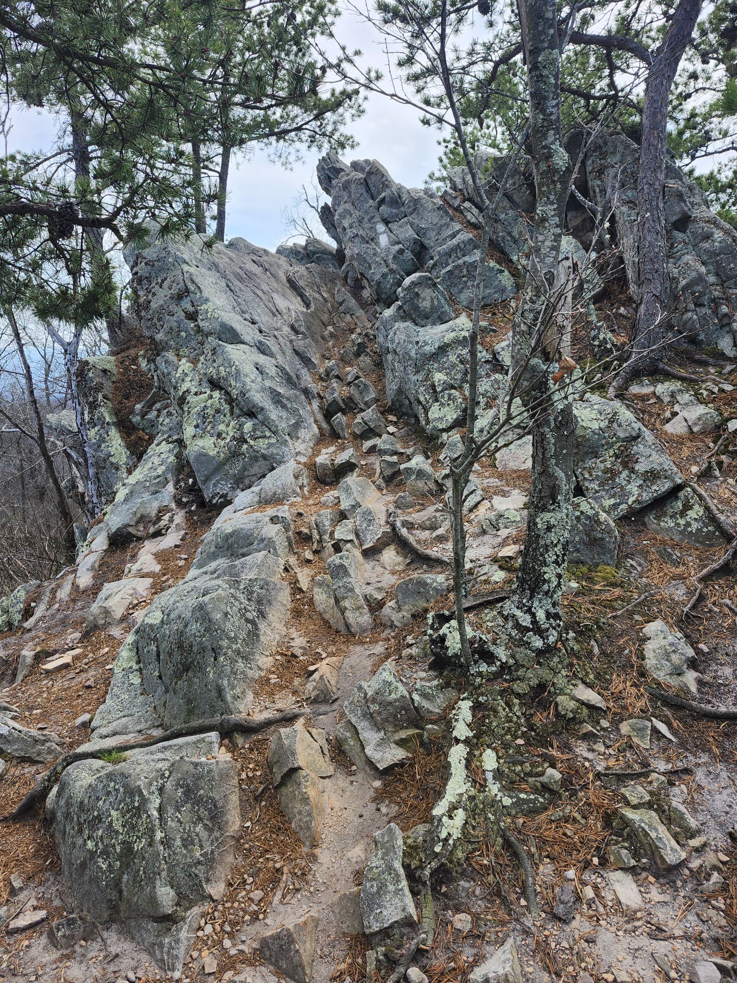 Last year, we noted the last blooms of the Trailing Arbutus (Epigaea repens, above), a new plant for us. Today, there were scattered colonies at the lowest and highest elevations (around 2100 feet). The flowers were open at the bottom of the mountain and opening at the top. We’re fortunate to catch these on the right week. If we’ve seen them on other mountains we didn’t notice without the flowers.