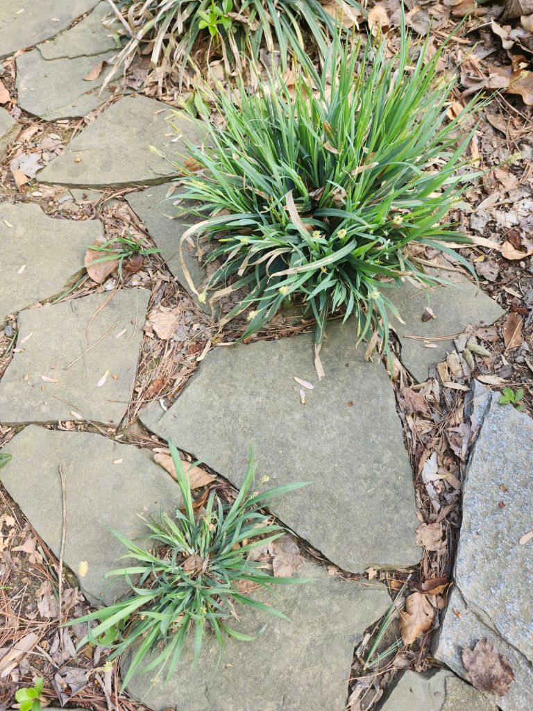 Seedlings of a blue-green leafed, native sedge (Carex laxiculmis) are popping up in gaps between path stones (above) in the side garden, but also in gaps between hellebores where no plant was needed. The clumps gain size quickly, and possibly ones in the path will need to be dug out. But, I bought the first few and now there are numerous freebies. How good is that?