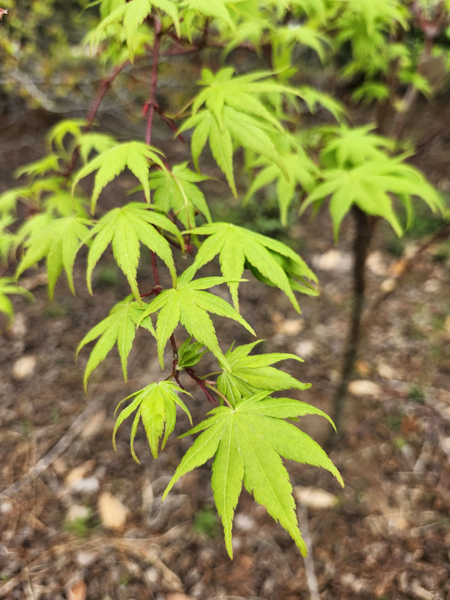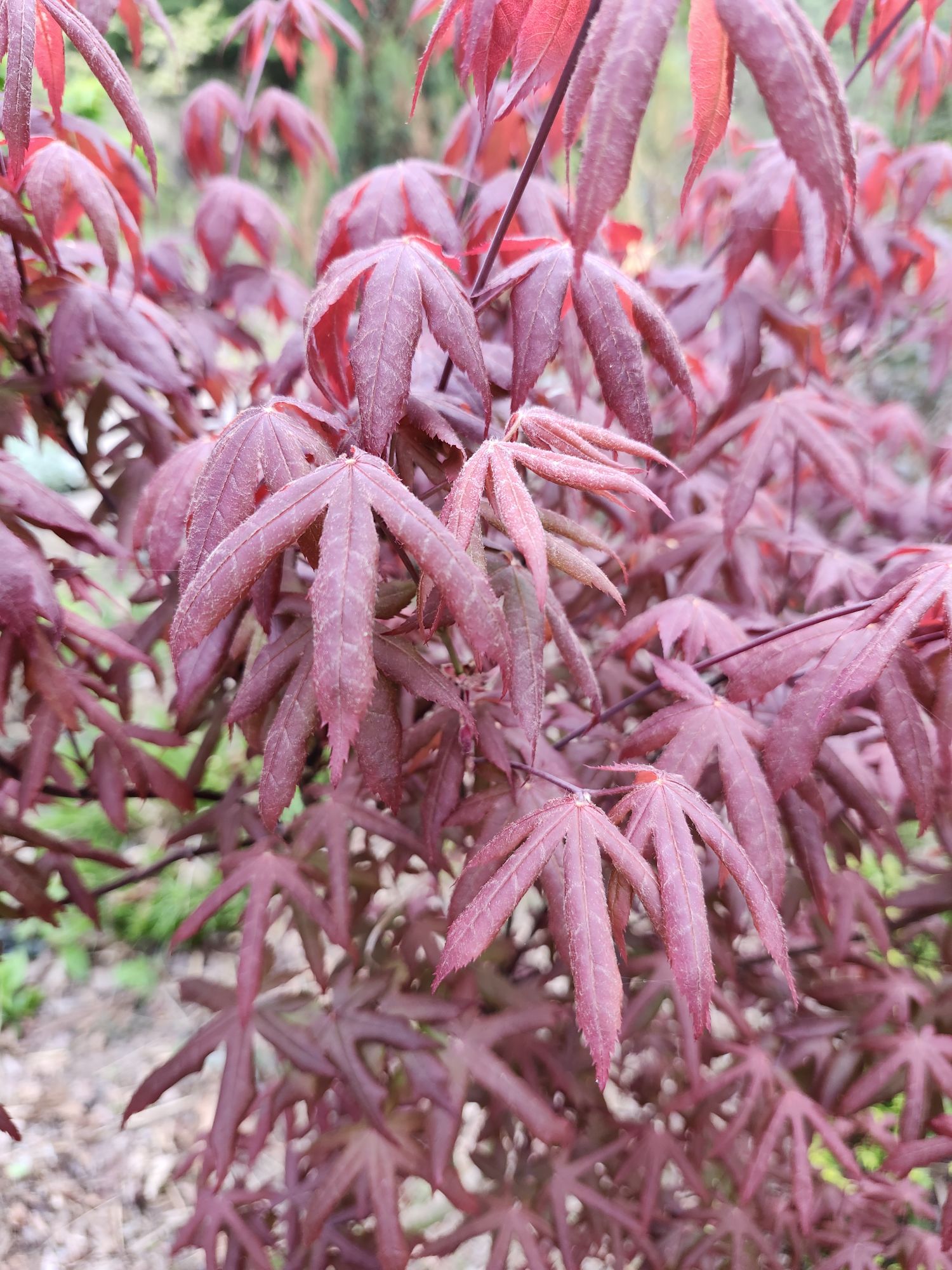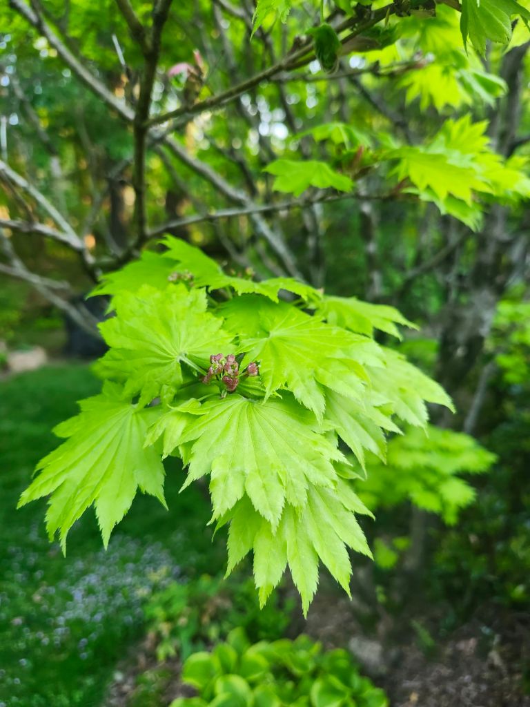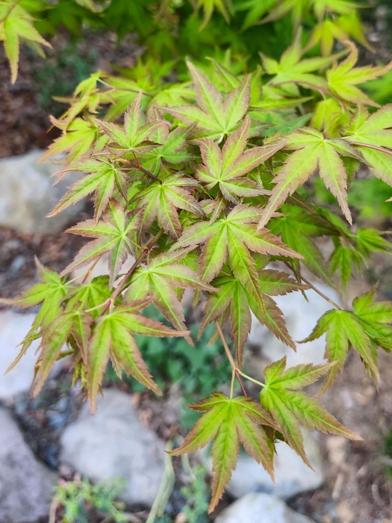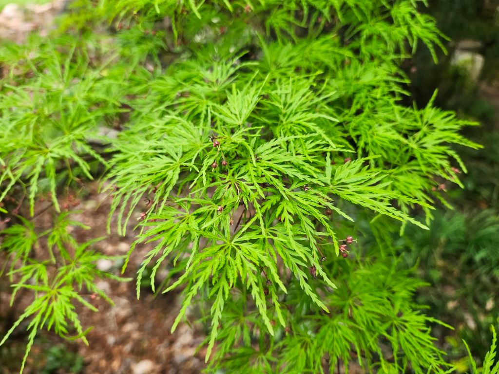 For many collectors of Japanese maples, autumn is their favorite for the marvelous foliage colors, but in the early weeks when leaves have newly emerged, the colors are most vibrant. By mid-June, colors begin to fade in the summer heat, so today is the best time to stroll, stopping at each maple to enjoy.