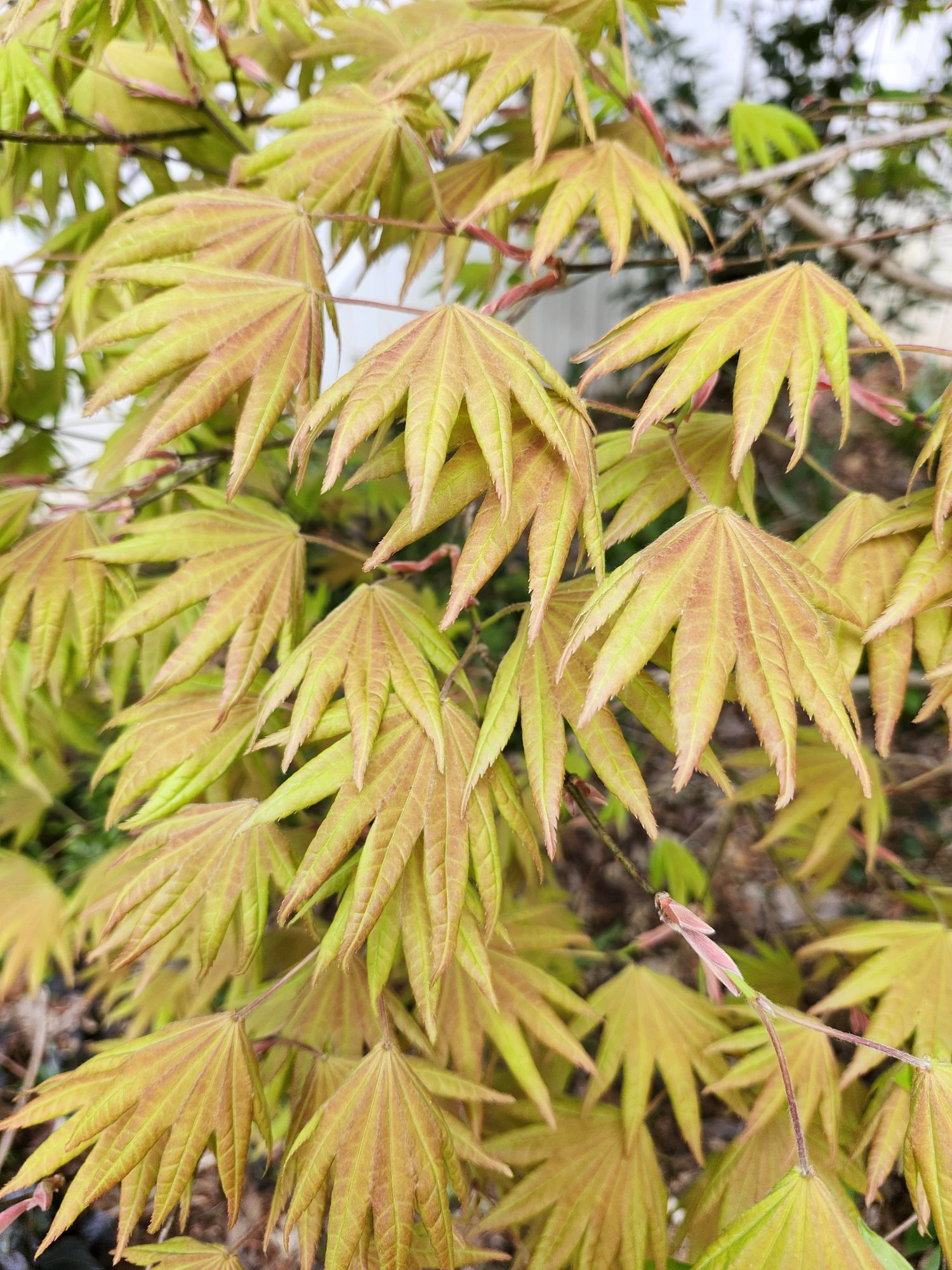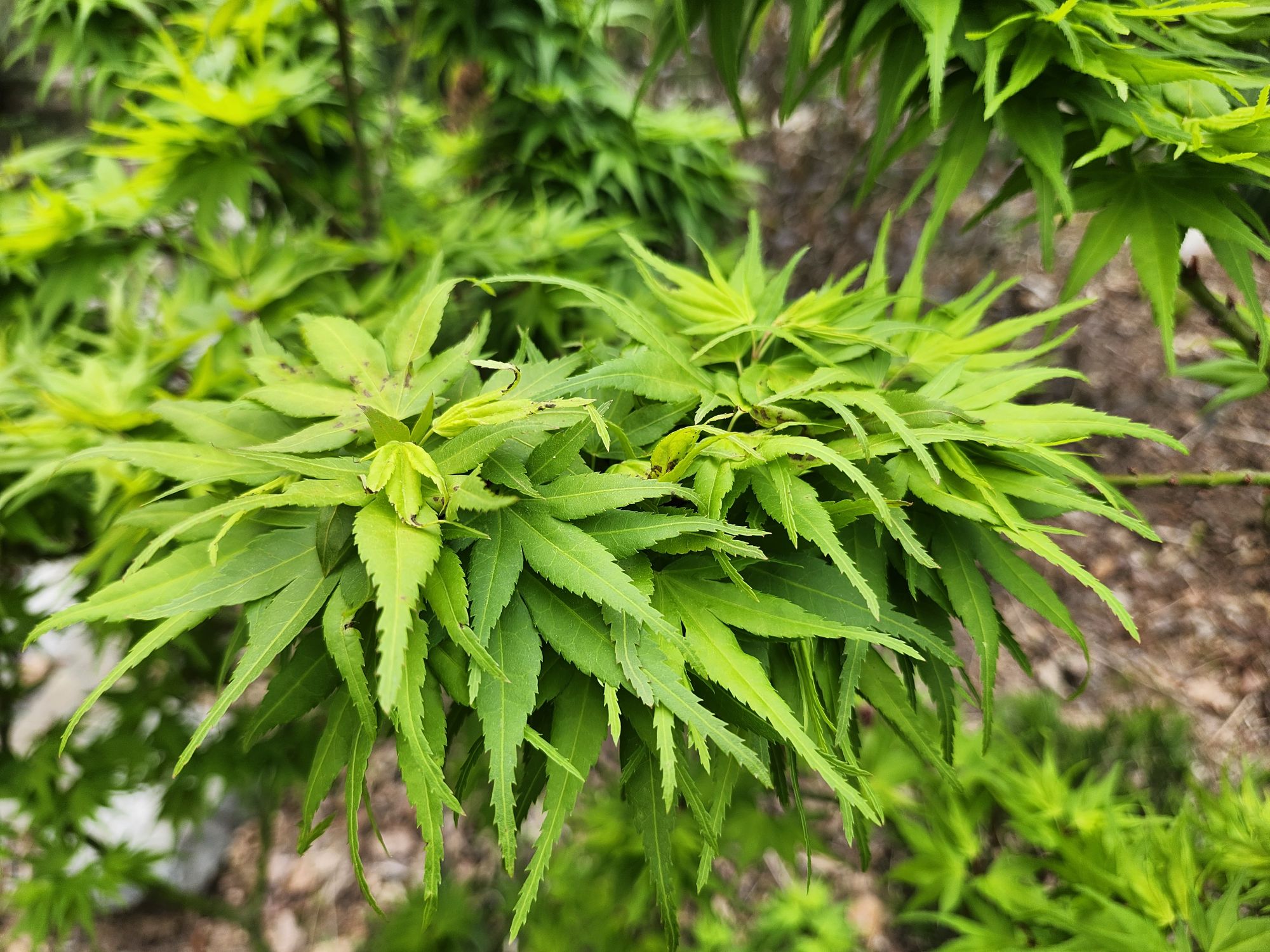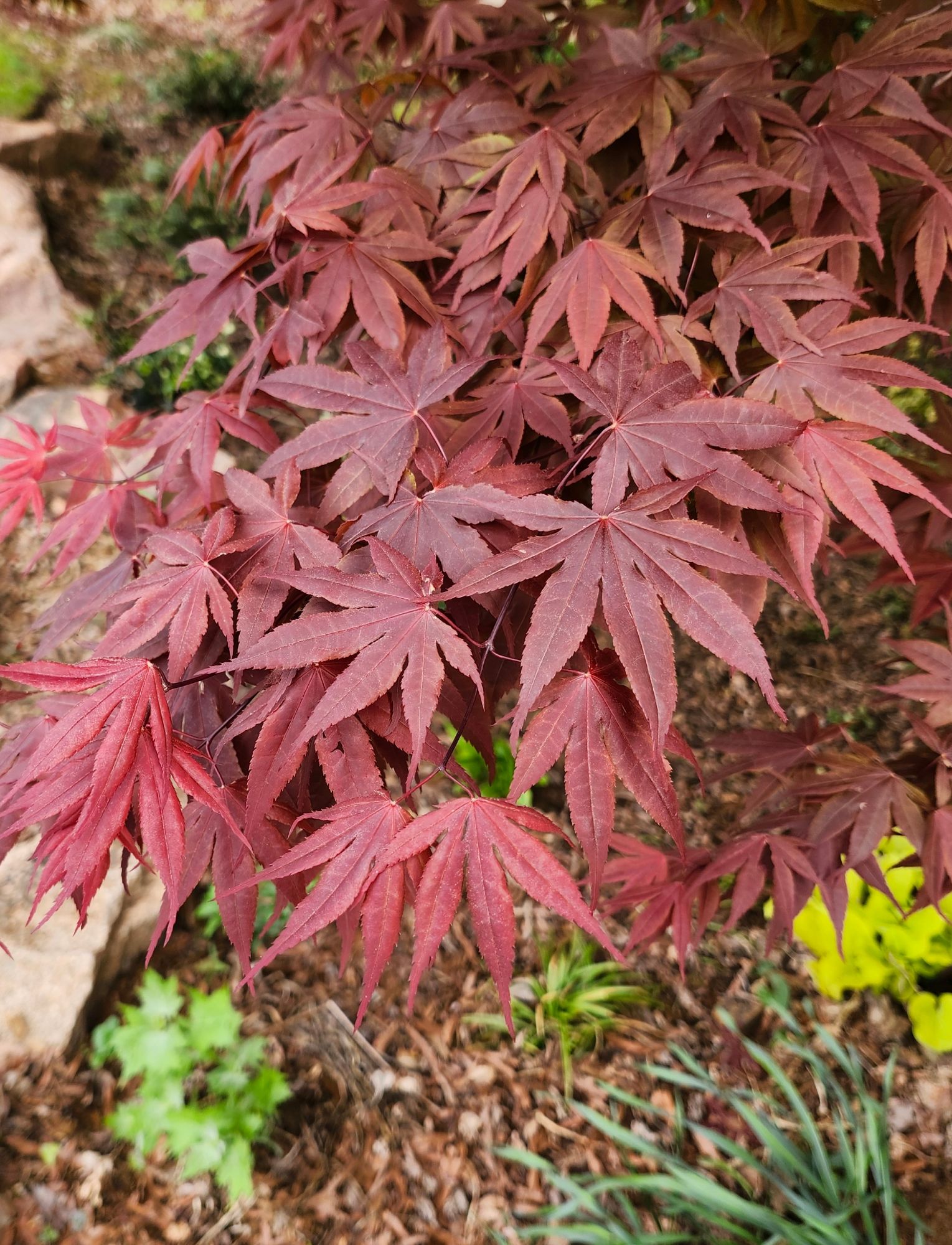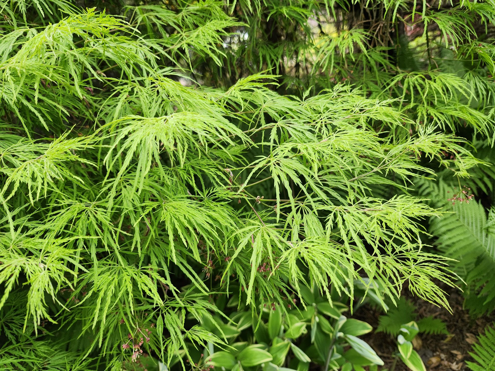 For many collectors of Japanese maples, autumn is their favorite for the marvelous foliage colors, but in the early weeks when leaves have newly emerged, the colors are most vibrant. By mid-June, colors begin to fade in the summer heat, so today is the best time to stroll, stopping at each maple to enjoy.