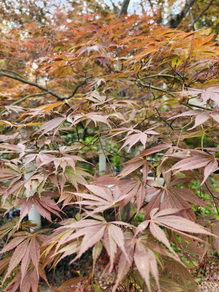 A few maples are not included here because their green leaves are similar to others. Also, and most unfortunately, my favorite Japanese maple from years of traveling to Oregon, two Floating Cloud maples (‘Ukigumo’) have none of the glorious color that prompted my efforts to move the trees to multiple locations, attempting to find an ideal location. Instead, both have become nearly green.